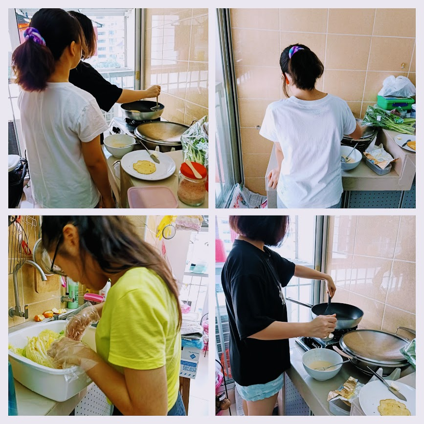 Our kitchen was a hive of activity today.  Sherilyn spent the entire day making her 3rd batch of classic red kimchi while Alycia and Cass made pancakes.  Sherilyn also made her first batch of Baek Kimchi (White Kimchi) for Alycia and me who can't stomach her spicy red kimchi.  She did all these in between zoom church youth fellowship meeting and entertaining Haru, our new baby kitten. Then she cooked dinner.