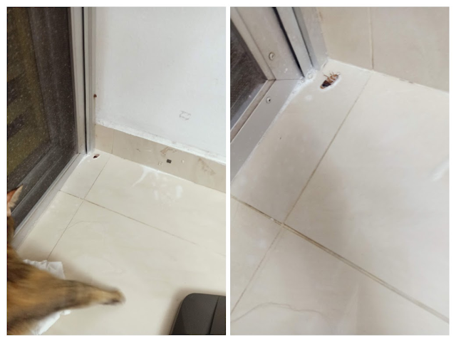 Haru saved me from a cockroach! Of all the insects in the world, I fear the darn roach the most.  It's the most disgusting, stinkiest, and most annoying pest ever.  I know it's an irrational fear but roaches are simply gross and they flap their stinky wings and fly toward you to scare the shit out of you.  Growing up, I had very bad experiences with roaches and developed a chronic phobia of roaches.